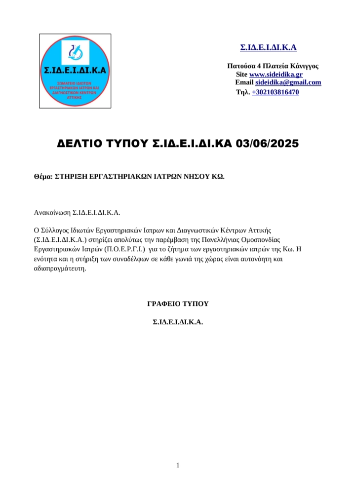 ΔΕΛΤΙΟ ΤΥΠΟΥ ΓΙΑ ΝΗΣΟ ΚΩ 03/06/2025