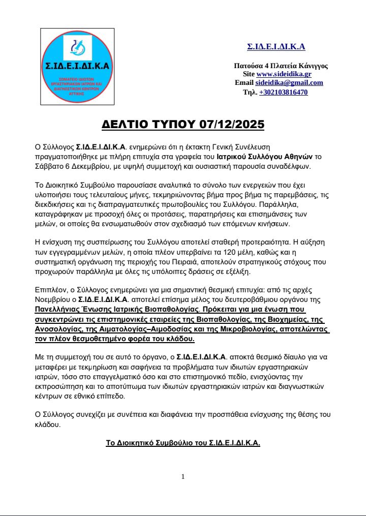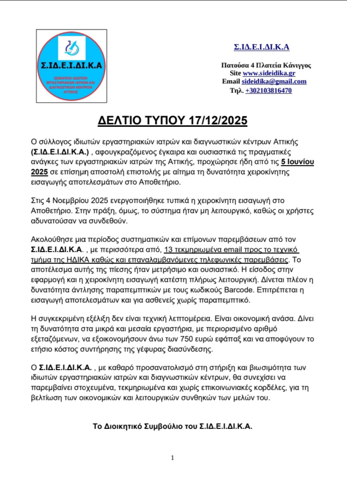 ΔΕΛΤΙΟ ΤΥΠΟΥ 17/12/2025